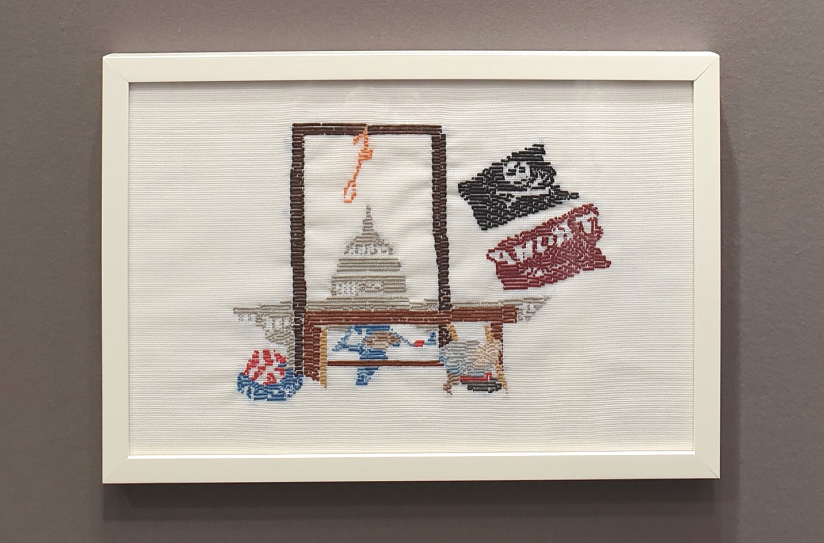 Cette série de broderies posent la question de l'image, de son pouvoir et de son interprétation dans une société faite de communication et d'images en abondance.