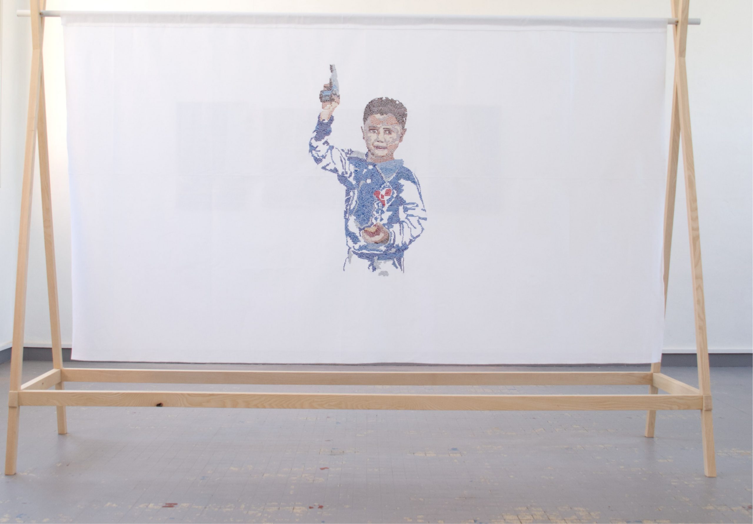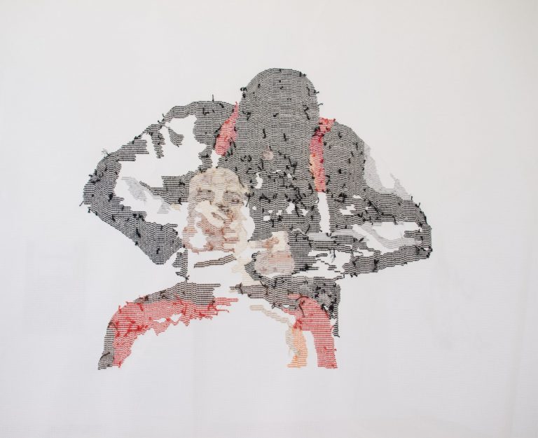These embroideries raise the question of the image, its power and its interpretation in a society that is made of communication and images in abundance.
